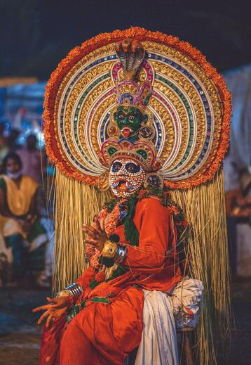 The Mudiyettu ritual is begun soon after the setting of the sun and goes on till just before sun rise. Recently Mudiyettu was inscribed in the UNESCO’s Representative List of the Intangible Cultural Heritage of Humanity and becomes the second art form from Kerala after Kutiyattam.
